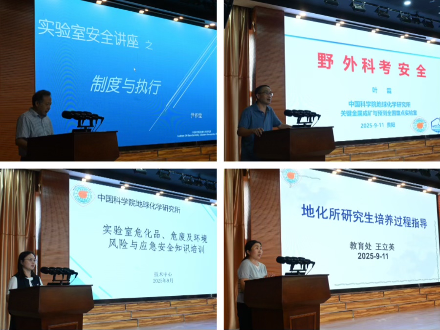 新学期伊始,中国科学院地球化学研究所(以下简称地化所)于9月11日在一号楼报告厅开展2025年新进所研究生、联培生和职工入所教育培训。培训会由教育处、人事处、党办、办公室、技术中心等联合主办,党委副书记、纪委书记戴开结,副所长陈伟出席会议,相关职能部门工作人员以及进所研究生和职工等100余名师生参加了会议,教育处帅世文处长主持培训会。
