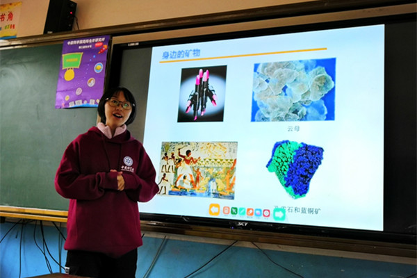 11月6日上午,研究所组织志愿者前往光炽希望小学,给小朋友们做了生动有趣的科普报告。志愿者结合此次科学节主题,用简单易懂的方式向小朋友们介绍了岩石的分类、化石的形成、矿物的利用等地球知识,小朋友们也对感兴趣的知识点积极提问。报告结束后,志愿者和小朋友在操场上进行了课外活动。