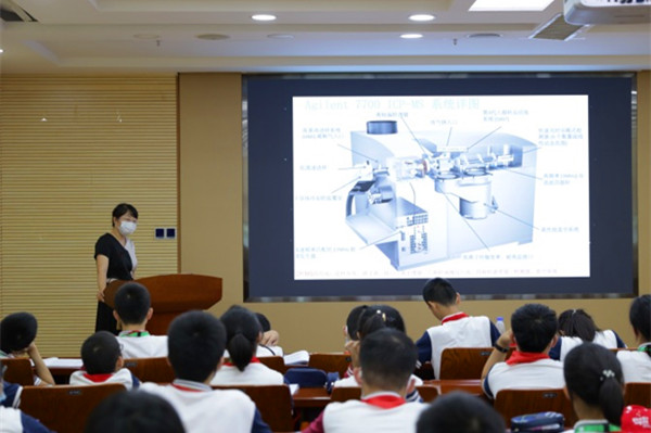 随后,全体师生在杨溢博士的带领下,参观了地化所的所史展示厅及矿物岩石陈列馆,在杨老师生动地讲解下,孩子们不仅被陈列馆里的陨石及各类矿物岩石深深吸引着,更是对地化所的发展史有了深刻了解。