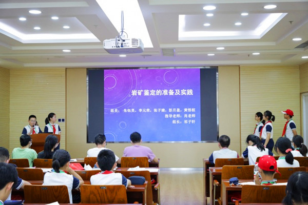 5日下午,各小组将上午的实验过程及成果做成PPT向指导老师们汇报学习成果,负责指导的科研人员和带队老师对各组进行了点评。汇报结束后,科技处黄婷老师做了最后总结,宣布本次研学活动中科院地化所部分圆满结束。活动最后,师生们来到研究所门前进行了合影留念。