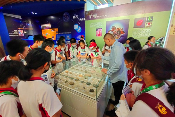 随后,全体师生在杨溢博士的带领下,分别参观了矿物岩石陈列馆和地化所历史展馆。在陈列馆中,通过观察实物,同学们进一步认识了各种岩石矿物在物理性质上的差异之处。同时,经过讲解员生动地讲解,同学们也了解到研究所发展历程以及历年来的科研成果,熟悉了研究所的整体布局。同学们瞻仰院士风采,体会到科学研究中必不可缺的一种刻苦钻研、积极探索的进取精神。